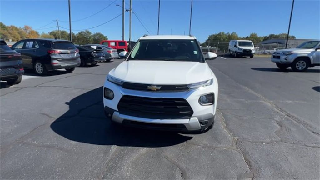 CARFAX One-Owner. Clean CARFAX. Certified. Summit White 2022 Chevrolet TrailBlazer LT FWD CVT 1.3L Ecotec Turbo DOHC SIDI w/VVT 2-Way Power Driver Lumbar Seat Adjuster, 4-Way Manual Front Passenger Seat Adjuster, 4-Wheel Disc Brakes, 5.45 Axle Ratio, 6 Speakers, 6-Speaker Audio System Feature, 8-Way Power Driver Seat Adjuster, ABS brakes, Air Conditioning, Alloy wheels, AM/FM radio: SiriusXM, Auto High-beam Headlights, Brake assist, Bumpers: body-color, Cloth Seat Trim, Compass, Delay-off headlights, Driver door bin, Driver vanity mirror, Dual front impact airbags, Dual front side impact airbags, Electronic Stability Control, Emergency communication system: OnStar and Chevrolet connected services capable, Exterior Parking Camera Rear, Flat-Folding Front Passenger Seatback, Front anti-roll bar, Front Bucket Seats, Front Center Armrest, Front fog lights, Front License Plate Bracket, Front reading lights, Front wheel independent suspension, Fully automatic headlights, Heated door mirrors, Heated Driver & Front Passenger Seats, Heated front seats, Illuminated entry, Knee airbag, Low tire pressure warning, Occupant sensing airbag, Overhead airbag, Overhead console, Panic alarm, Passenger door bin, Passenger vanity mirror, Power door mirrors, Power driver seat, Power steering, Power windows, Preferred Equipment Group 1LT, Radio data system, Radio: Chevrolet Infotainment 3 System, Rear side impact airbag, Rear window defroster, Rear window wiper, Reinforced Electric Heater/Defroster System, Remote keyless entry, Ride & Handling Suspension, Roof rack: rails only, Security system, SiriusXM Radio, Speed control, Split folding rear seat, Spoiler, Steering wheel mounted audio controls, Tachometer, Telescoping steering wheel, Tilt steering wheel, Traction control, Trip computer, Variably intermittent wipers, Wheels: 17 High Gloss Black Machined Aluminum, Wireless Apple CarPlay/Android Auto.