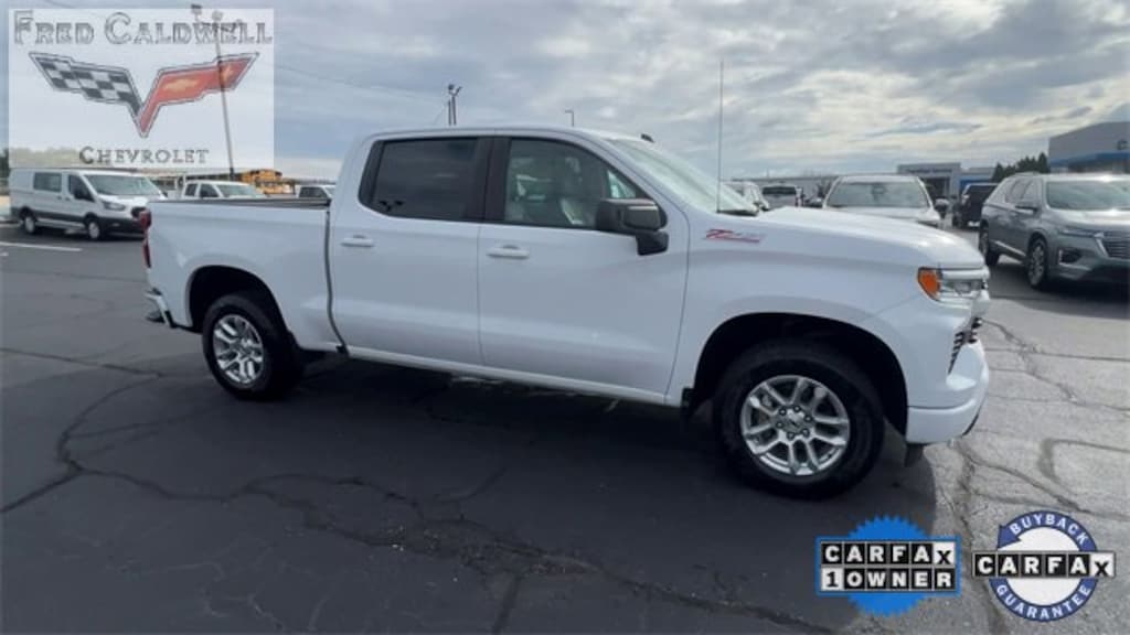 CARFAX One-Owner. Clean CARFAX. Summit White 2023 Chevrolet Silverado 1500 RST 4WD 10-Speed Automatic EcoTec3 5.3L V8 10-Speed Automatic, 4WD, Black Cloth, 10-Way Power Driver Seat w/Lumbar, 12.3 Multicolor Reconfigurable Digital Display, 120-Volt Bed Mounted Power Outlet, 120-Volt Instrument Panel Power Outlet, 170 Amp Alternator, 220 Amp Alternator, 3.23 Rear Axle Ratio, 4-Wheel Disc Brakes, 40/20/40 Front Split-Bench Seat, 6 Speakers, 6-Speaker Audio System, ABS brakes, Air Conditioning, All-Star Edition, All-Weather Floor Liner (LPO) (AAK), Alloy wheels, AM/FM radio: SiriusXM with 360L, Apple CarPlay/Android Auto, Auto High-beam Headlights, Auto-Locking Rear Differential, Automatic Emergency Braking, Automatic temperature control, Auxiliary External Transmission Oil Cooler, Bluetooth® For Phone, Brake assist, Bumpers: body-color, Chevrolet Connected Access Capable, Chevytec Spray-On Black Bedliner, Cloth Seat Trim, Color-Keyed Carpeting Floor Covering, Compass, Convenience Package, Deep-Tinted Glass, Delay-off headlights, Driver door bin, Driver vanity mirror, Dual Exhaust w/Polished Outlets, Dual front impact airbags, Dual front side impact airbags, Dual Rear USB Ports (Charge Only), Dual-Zone Automatic Climate Control, Electric Rear-Window Defogger, Electrical Steering Column Lock, Electronic Cruise Control, Electronic Stability Control, External Engine Oil Cooler, EZ Lift Power Lock & Release Tailgate, Following Distance Indicator, Forward Collision Alert, Front anti-roll bar, Front Center Armrest w/Storage, Front dual zone A/C, Front fog lights, Front Frame-Mounted Black Recovery Hooks, Front LED Fog Lamps, Front Pedestrian Braking, Front reading lights, Front Rubberized Vinyl Floor Mats, Front wheel independent suspension, Fully automatic headlights, HD Rear Vision Camera, Heated door mirrors, Heated Driver & Front Outboard Passenger Seats, Heated front seats, Heated Power-Adjustable Outside Mirrors, Heated Steering Wheel, Heated steering wheel, Heavy-Duty Air Filter, High Gloss Black Mirror Caps, Hill Descent Control, Hitch Guidance, Illuminated entry, Inside Rear-View Mirror w/Tilt, IntelliBeam Automatic High Beam On/Off, Keyless Open & Start, Lane Keep Assist w/Lane Departure Warning, LED Cargo Area Lighting, Low tire pressure warning, Not Equipped w/Steering Column Lock, Occupant sensing airbag, Off-Road Suspension, OnStar & Chevrolet Connected Services Capable, Outside temperature display, Overhead airbag, Overhead console, Panic alarm, Passenger door bin, Passenger vanity mirror, Power door mirrors, Power driver seat, Power Front Windows w/Driver Express Up/Down, Power Front Windows w/Passenger Express Down, Power Rear Windows w/Express Down, Power steering, Power windows, Preferred Equipment Group 1SP, Premium audio system: Chevrolet Infotainment 3 Premium, Protection Package, Radio data system, Radio: Chevrolet Infotainment 3 Premium System, Rear 60/40 Folding Bench Seat (Folds Up), Rear reading lights, Rear Rubberized-Vinyl Floor Mats, Rear step bumper, Rear Wheelhouse Liners, Rear window defroster, Remote keyless entry, Remote Vehicle Starter System, Security system, SiriusXM w/360L, Speed control, Speed-sensing steering, Split folding rear seat, Standard Suspension Package, Standard Tailgate, Steering Wheel Audio Controls, Steering wheel mounted audio controls, Tachometer, Telescoping steering wheel, Theft Deterrent System (Unauthorized Entry), Tilt steering wheel, Traction control, Trailering Package, Trip computer, Variably intermittent wipers, Voltmeter, Wheels: 18 x 8.5 Bright Silver Painted Aluminum, Wi-Fi Hot Spot Capable, Wireless Phone Projection, Wrapped Steering Wheel, Z71 Off-Road & Protection Package, Z71 Off-Road Package.