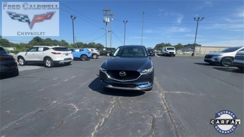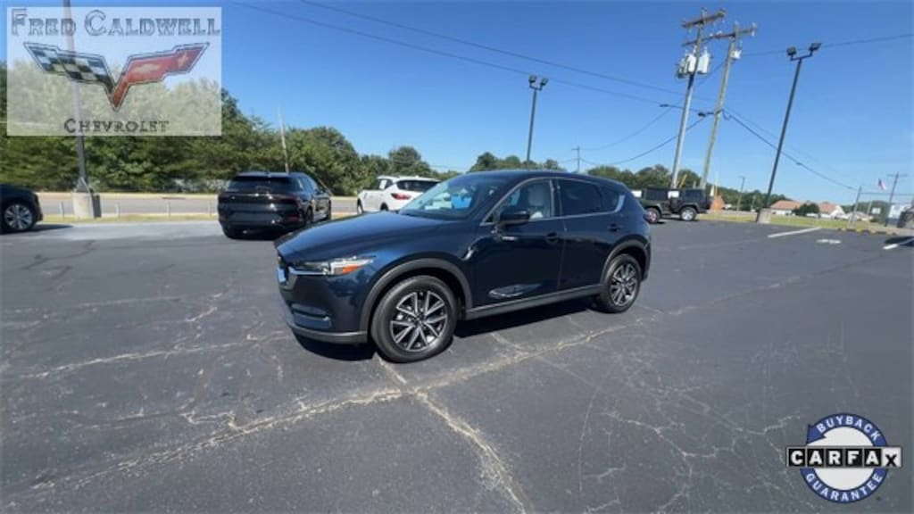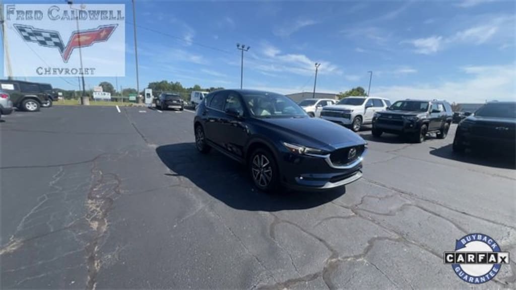 Clean CARFAX. Deep Crystal Blue Mica 2018 Mazda CX-5 Grand Touring AWD 6-Speed Automatic SKYACTIV® 2.5L 4-Cylinder DOHC 16V 10 Speakers, 19 x 7J Aluminum Alloy Wheels, 4-Wheel Disc Brakes, 4.624 Axle Ratio, ABS brakes, Active Driving Display (Windshield Type), Air Conditioning, Alloy wheels, AM/FM radio: SiriusXM, Auto High-beam Headlights, Auto-dimming Rear-View mirror, Automatic temperature control, Bose 10-Speaker Audio Sound System, Brake assist, Bumpers: body-color, Delay-off headlights, Driver door bin, Driver vanity mirror, Dual front impact airbags, Dual front side impact airbags, Electronic Stability Control, Emergency communication system, Exterior Parking Camera Rear, Four wheel independent suspension, Front anti-roll bar, Front Bucket Seats, Front Center Armrest, Front dual zone A/C, Front fog lights, Front reading lights, Fully automatic headlights, Garage door transmitter: HomeLink, Heated door mirrors, Heated front seats, Heated Front Sport Shape Seats, Heated Rear Seats, Heated Steering Wheel, Illuminated entry, Leather Seat Trim, Leather Shift Knob, Low tire pressure warning, Mazda Navigation System, Memory seat, Navigation System, Occupant sensing airbag, Outside temperature display, Overhead airbag, Overhead console, Panic alarm, Passenger door bin, Passenger vanity mirror, Power door mirrors, Power driver seat, Power Liftgate, Power moonroof, Power passenger seat, Power steering, Power windows, Premium Package, Radio data system, Radio: AM/FM/HD Audio System, Rain sensing wipers, Rear anti-roll bar, Rear reading lights, Rear seat center armrest, Rear window defroster, Rear window wiper, Remote keyless entry, Speed control, Speed-sensing steering, Split folding rear seat, Spoiler, Steering wheel mounted audio controls, Tachometer, Telescoping steering wheel, Tilt steering wheel, Traction control, Trip computer, Turn signal indicator mirrors, Variably intermittent wipers, Windshield Wiper De-Icer.