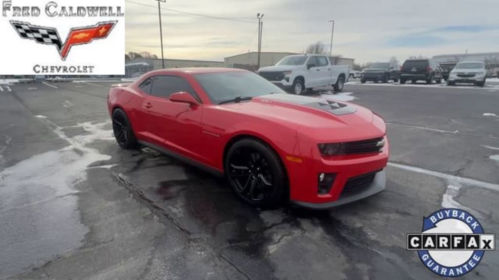 Clean CARFAX. 2013 Chevrolet Camaro ZL1 RWD 6-Speed 6.2L V8 Supercharged 2 Front Cup Holders, 20 x 10 Fr & 20 x 11 Rr 10-Spoke Wheels, 3-Spoke Leather-Wrapped Steering Wheel, 4-Wheel Disc Brakes, 9 Speakers, ABS brakes, Air Conditioning, Alloy wheels, AM/FM radio: SiriusXM, Analog Instrumentation, Auto-dimming door mirrors, Auto-dimming Rear-View mirror, Body-Color Roof Ditch Molding, Boston Acoustics Premium 9-Speaker Audio System, Brake assist, Bumpers: body-color, Carpeted Front Floor Mats, Compass, Delay-off headlights, Driver door bin, Driver vanity mirror, Dual front impact airbags, Dual front side impact airbags, Electric Rear-Window Defogger, Electronic Cruise Control, Electronic Stability Control, Emergency communication system: OnStar Directions & Connections, Four wheel independent suspension, Front anti-roll bar, Front Bucket Seats, Front Center Armrest, Front fog lights, Front reading lights, Front Sport Bucket Seats, Fully automatic headlights, Garage door transmitter, Head-Up Display, Heads-Up Display, Heated door mirrors, Heated Driver & Front Passenger Seats, Heated front seats, High-Intensity Discharge Headlamps, High-Intensity Discharge Headlights, Illuminated entry, LATCH System, Leather Appointed Seating Surfaces, Leather Shift Knob, Leather-Wrapped Shift Knob, Low tire pressure warning, Maintenance-Free Battery, Manual Rake & Telescopic Steering Column, Occupant sensing airbag, OnStar 6 Months Directions & Connections Plan, Outside temperature display, Overhead airbag, Panic alarm, Passenger door bin, Passenger vanity mirror, Power door mirrors, Power driver seat, Power passenger seat, Power Programmable Door Locks, Power steering, Power windows, Radio data system, Radio: AM/FM Stereo w/Color Touch, Rear anti-roll bar, Rear window defroster, Remote Keyless Entry, Remote keyless entry, Security system, SIRIUSXM Satellite Radio, Speed control, Speed-sensing steering, Spoiler, StabiliTrak, Steering Wheel Mounted Audio Controls, Steering wheel mounted audio controls, Tachometer, Telescoping steering wheel, Tilt steering wheel, Traction control, Trip computer, Universal Home Remote, USB Port Audio System Feature, Variably intermittent wipers, Voltmeter.