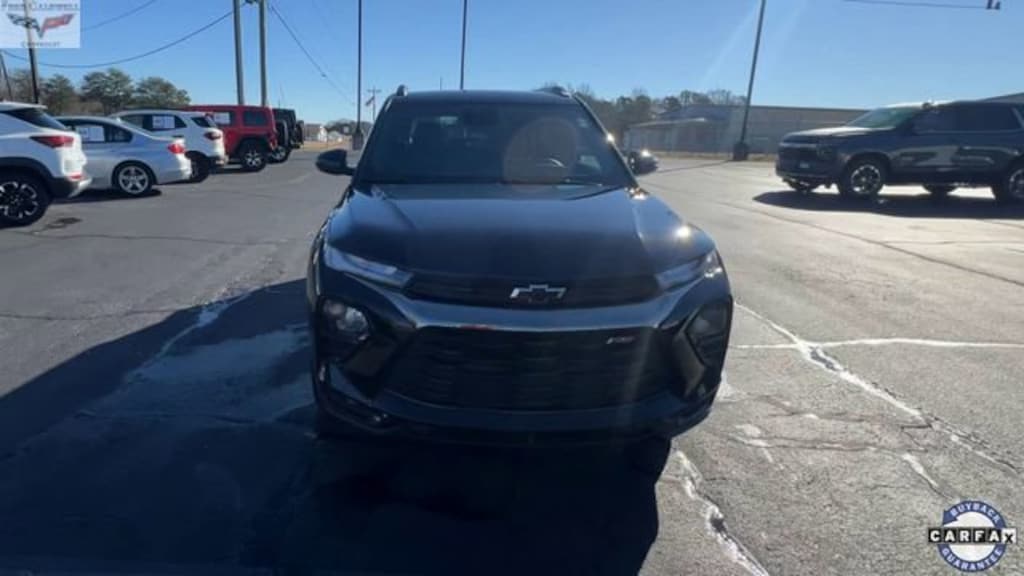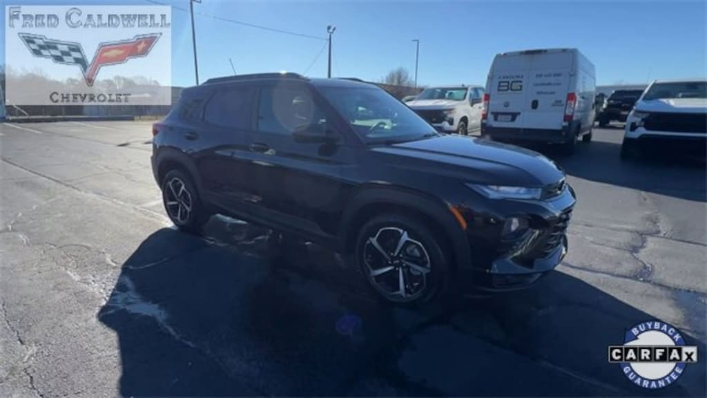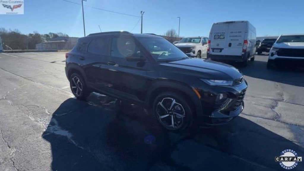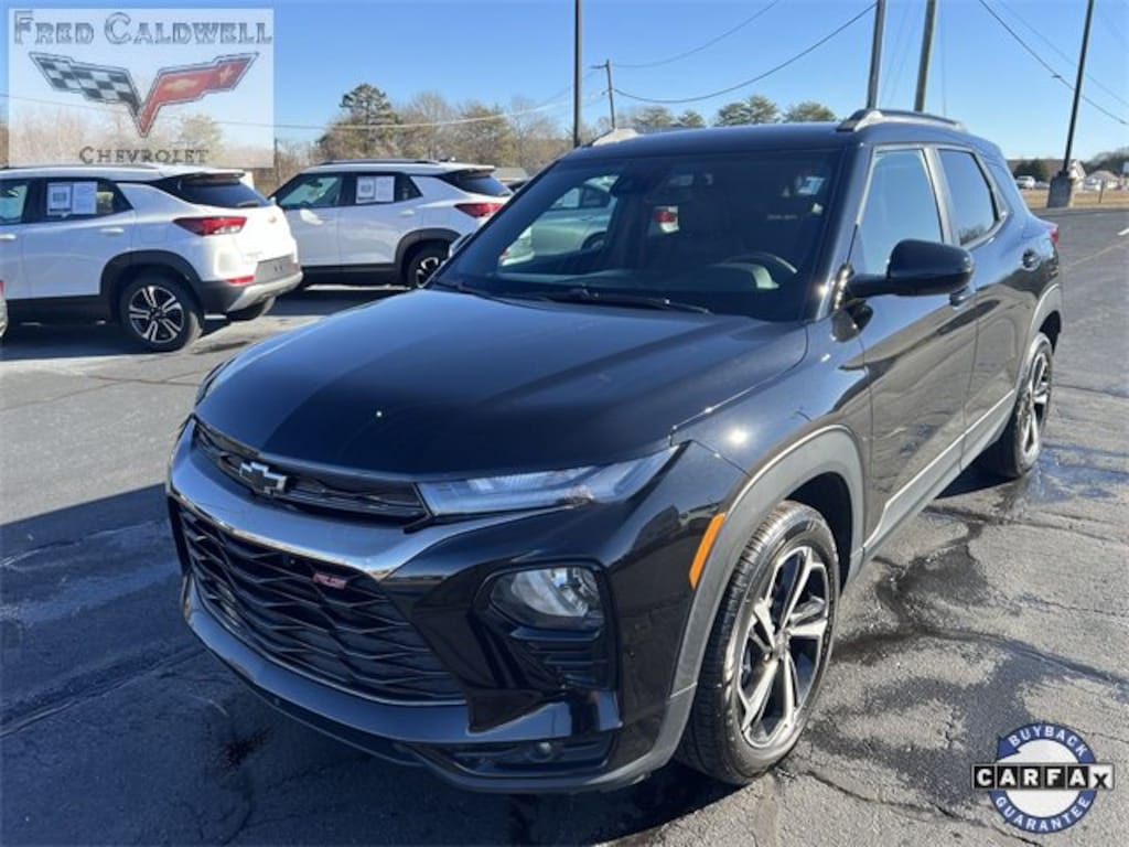 Clean CARFAX. Mosaic Black Metallic 2022 Chevrolet TrailBlazer RS FWD CVT 1.3L Ecotec Turbo DOHC SIDI w/VVT 2-Way Power Driver Lumbar Seat Adjuster, 4-Way Manual Front Passenger Seat Adjuster, 4-Wheel Disc Brakes, 5.45 Axle Ratio, 6 Speakers, 6-Speaker Audio System Feature, 8-Way Power Driver Seat Adjuster, ABS brakes, Air Conditioning, Alloy wheels, AM/FM radio: SiriusXM, Auto High-beam Headlights, Brake assist, Bumpers: body-color, Cloth w/Leatherette Seat Trim, Compass, Delay-off headlights, Driver door bin, Driver vanity mirror, Dual front impact airbags, Dual front side impact airbags, Electronic Stability Control, Emergency communication system: OnStar and Chevrolet connected services capable, Exterior Parking Camera Rear, Flat-Folding Front Passenger Seatback, Front anti-roll bar, Front Bucket Seats, Front Center Armrest, Front fog lights, Front License Plate Bracket, Front reading lights, Front wheel independent suspension, Fully automatic headlights, Heated door mirrors, Heated Driver & Front Passenger Seats, Heated front seats, Heated Steering Wheel, Heated steering wheel, Illuminated entry, Knee airbag, Leather Shift Knob, Leather steering wheel, Low tire pressure warning, Mosaic Black Metallic Roof, Occupant sensing airbag, Overhead airbag, Overhead console, Panic alarm, Passenger door bin, Passenger vanity mirror, Power door mirrors, Power driver seat, Power steering, Power windows, Preferred Equipment Group 1RS, Radio data system, Radio: Chevrolet Infotainment 3 System, Rear seat center armrest, Rear side impact airbag, Rear window defroster, Rear window wiper, Remote keyless entry, Ride & Handling Suspension, Roof rack: rails only, Security system, Speed control, Split folding rear seat, Spoiler, Steering wheel mounted audio controls, Tachometer, Telescoping steering wheel, Tilt steering wheel, Traction control, Trip computer, Variably intermittent wipers, Wheels: 18 High Gloss Black Machined Aluminum, Wireless Apple CarPlay/Android Auto.