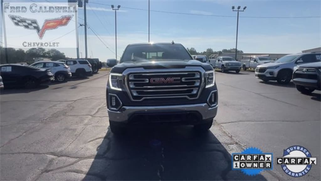 CARFAX One-Owner. Onyx Black 2021 GMC Sierra 1500 SLT 4WD 10-Speed Automatic 3.0L I6 10-Speed Automatic, 4WD, Dark Walnut/Slate Leather, 10-Way Power Driver Seat Adjuster w/Lumbar, 10-Way Power Passenger Seat Adjuster w/Lumbar, 12-Volt Rear Auxiliary Power Outlet, 120-Volt Bed Mounted Power Outlet, 120-Volt Instrument Panel Power Outlet, 170 Amp Alternator, 2 USB Ports, 2 USB Ports (1st Row), 20 x 9 Polished Aluminum Wheels, 220 Amp Alternator, 3.23 Rear Axle Ratio, 4-Wheel Disc Brakes, 4G LTE Wi-Fi Hotspot Capable, 6 Speakers, 6-Speaker Audio System Feature, ABS brakes, Adaptive Cruise Control, Air Conditioning, Alloy wheels, AM/FM radio: SiriusXM with 360L, Apple CarPlay/Android Auto, Auto-dimming door mirrors, Auto-dimming Rear-View mirror, Auto-Locking Rear Differential, Automatic Emergency Braking, Automatic temperature control, Auxiliary External Transmission Oil Cooler, Brake assist, Bumpers: chrome, Chrome Grille, Chrome Wheel To Wheel Assist Steps, Color-Keyed Carpeting Floor Covering, Compass, Console Insert Organizer Tray (LPO), Deep-Tinted Glass, Delay-off headlights, Driver Alert Package I, Driver Alert Package II, Driver door bin, Driver Memory, Driver vanity mirror, Dual Exhaust w/Premium Tips, Dual front impact airbags, Dual front side impact airbags, Electric Rear-Window Defogger, Electrical Lock Control Steering Column, Electronic Stability Control, Engine Block Heater, Floor-Mounted Center Console, Following Distance Indicator, Forward Collision Alert, Front 40/20/40 Split-Bench Seat, Front anti-roll bar, Front Bucket Seats, Front Center Armrest w/Storage, Front dual zone A/C, Front fog lights, Front Frame-Mounted Black Recovery Hooks, Front Pedestrian Braking, Front reading lights, Front wheel independent suspension, Fully automatic headlights, GMC Connected Access Capable, Heated 2nd Row Outboard Seats, Heated door mirrors, Heated Driver & Front Outboard Passenger Seating, Heated front seats, Heated steering wheel, Heavy Duty Suspension, Heavy-Duty Air Filter, Hill Descent Control, Hitch Guidance, Hitch Guidance w/Hitch View, Illuminated entry, In-Vehicle Trailering App, Integrated Trailer Brake Controller, IntelliBeam Automatic High Beam On/Off, Keyless Open & Start, Lane Change Alert w/Side Blind Zone Alert, Lane Keep Assist w/Lane Departure Warning, LED Cargo Area Lighting, Low tire pressure warning, Manual Tilt-Wheel & Telescoping Steering Column, Memory seat, Occupant sensing airbag, Off-Road Suspension, OnStar & GMC Connected Services Capable, Outside temperature display, Overhead airbag, Overhead console, Panic alarm, Passenger door bin, Passenger vanity mirror, Perf Leather-Appointed Front Outboard Seat Trim, Perimeter Lighting, Power Door Locks, Power door mirrors, Power driver seat, Power Front Passenger Windows w/Express Up/Down, Power Front Windows w/Driver Express Up/Down, Power passenger seat, Power Rear Windows w/Express Down, Power Sliding Rear Window w/Rear Defogger, Power steering, Power windows, Preferred Equipment Group 4SA, Premium audio system: GMC Infotainment System, Premium Bose 7-Speaker Sound System, ProGrade Trailering System, Radio data system, Radio: Premium GMC Infotainment Sys w/Multi-Touch, Radio: Premium GMC Infotainment Sys w/Navigation, Rear Cross Traffic Alert, Rear Dual USB Charging-Only Ports, Rear reading lights, Rear seat center armrest, Rear step bumper, Rear Wheelhouse Liners, Rear window defroster, Remote keyless entry, Remote Vehicle Starter System, Safety Alert Seat, Security system, SiriusXM w/360L, SLT Convenience Package, SLT Preferred Package, SLT Premium Plus Package, Speed control, Speed-sensing steering, Split folding rear seat, Spray-On Pickup Bed Liner w/GMC Logo, Steering Wheel Audio Controls, Steering wheel mounted audio controls, Tachometer, Telescoping steering wheel, Theft Deterrent System (Unauthorized Entry), Tilt steering wheel, Traction control, Trailer Tire Pressure Monitor System, Trailering