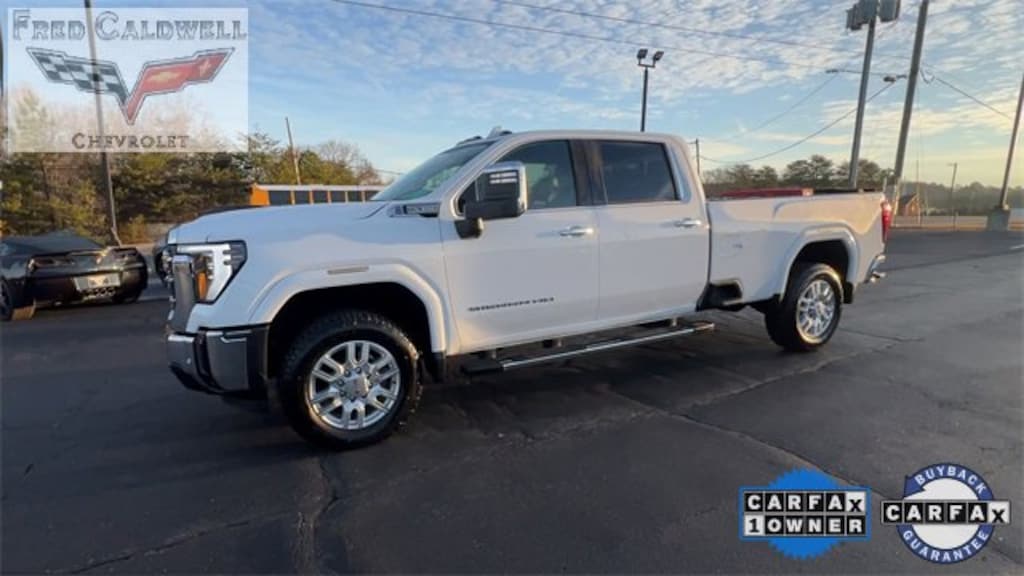 CARFAX One-Owner. Clean CARFAX. Summit White 2024 GMC Sierra 3500HD SLT 4WD 10-Speed Automatic 6.6L V8 10-Speed Automatic, 4WD, Jet Black Leather, 10-Way Power Driver Seat Adjuster w/Lumbar, 10-Way Power Passenger Seat Adjuster w/Lumbar, 120-Volt Bed Mounted Power Outlet, 120-Volt Instrument Panel Power Outlet, 2 Charge-Only Rear USB Ports, 2 Charge/Data USB Ports, 2 Charge/Data USB Ports Inside Center Console, 2-Speed Active Transfer Case, 3.73 Rear Axle Ratio, 4-Wheel Disc Brakes, 6 Speakers, 6-Speaker Audio System Feature, 6 Rectangular Chromed Tubular Assist Steps, ABS brakes, Adaptive Cruise Control, Air Conditioning, All-Weather Floor Liners (LPO), AM/FM radio: SiriusXM with 360L, Apple CarPlay/Android Auto, Auto High-beam Headlights, Auto-dimming door mirrors, Auto-dimming Rear-View mirror, Automatic Emergency Braking, Automatic temperature control, Bed View Camera w/2 Trailer Camera Provisions, Bose Premium 7-Speaker Sound System, Brake assist, Buckle to Drive, Bumpers: chrome, Chrome Surround Grille w/Chrome Insert Bars, Compass, Deep-Tinted Glass, Delay-off headlights, Driver door bin, Driver Memory, Driver vanity mirror, Dual front impact airbags, Dual front side impact airbags, Electric Rear-Window Defogger, Electronic Stability Control, Floor-Mounted Center Console, Following Distance Indicator, Forward Collision Alert, Front 40/20/40 Split-Bench Seats w/Lockable Storage, Front anti-roll bar, Front Bucket Seats, Front Center Armrest w/Storage, Front dual zone A/C, Front fog lights, Front Pedestrian Braking, Front Rain-Sensing Wipers, Front reading lights, Front wheel independent suspension, Fully automatic headlights, GMC Premium 13.4 Diagonal Information Display, HD Surround Vision, Heated 2nd Row Outboard Seats, Heated door mirrors, Heated Driver & Front Outboard Passenger Seats, Heated front seats, Heated steering wheel, Heavy-Duty 80 Amp-Hr Battery, Hitch Guidance w/Hitch View, Illuminated entry, Integrated Trailer Brake Controller, IntelliBeam Automatic High Beam On/Off, Keyless Open & Start, Lane Departure Warning System, LED Cargo Area Lighting, Low tire pressure warning, Manual Tilt-Wheel/Telescoping Steering Column, Memory seat, Occupant sensing airbag, Outside temperature display, Overhead airbag, Overhead console, Panic alarm, Passenger door bin, Passenger vanity mirror, Perf Leather-Appointed Front Outboard Seat Trim, Pickup Bed, Power door mirrors, Power driver seat, Power Front Windows w/Passenger Express Up/Down, Power passenger seat, Power Sliding Rear Window w/Defogger, Power steering, Power windows, Preferred Equipment Group 4SA, Premium audio system: Premium GMC Infotainment System, Push Button Start, Radio: AM/FM w/Premium GMC Infotainment System, Rain sensing wipers, Rear Cross Traffic Alert, Rear reading lights, Rear seat center armrest, Rear step bumper, Rear window defroster, Remote keyless entry, Remote Vehicle Starter System, Safety Alert Seat, Security system, Sierra HD Pro Safety Plus Package, SiriusXM w/360L, SLT Convenience Package, SLT Preferred Package, SLT Premium Package, Speed control, Speed-sensing steering, Split folding rear seat, Spray-On Pickup Bedliner w/GMC Logo, Steering Wheel Audio Controls, Steering wheel mounted audio controls, Suspension Package, Tachometer, Telescoping steering wheel, Tilt steering wheel, Traction control, Trailer Camera Provisions, Trailer Side Blind Zone Alert, Trip computer, Turn signal indicator mirrors, Ultrasonic Front & Rear Park Assist, Unauthorized Entry Theft-Deterrent System, Universal Home Remote, Variably intermittent wipers, Ventilated Driver & Front Passenger Seats, Voltmeter, Wireless Charging, Wireless Phone Projection.