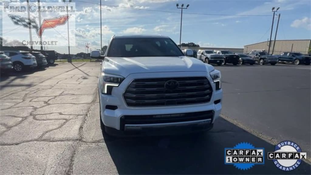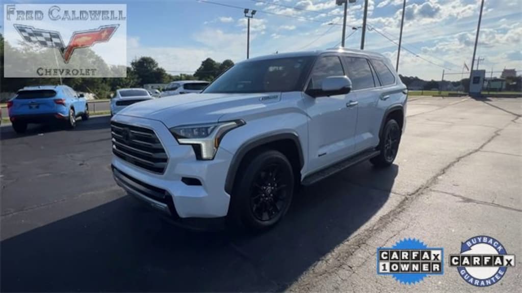 CARFAX One-Owner. Clean CARFAX. Pearl 2025 Toyota Sequoia 1794 Edition 4WD 10-Speed Automatic V6 Hybrid V6 Hybrid, 10-Speed Automatic, 4WD, 14 Speakers, 20 Alloy Wheels, 3rd row seats: split-bench, 4-Wheel Disc Brakes, ABS brakes, Air Conditioning, Alloy wheels, AM/FM radio: SiriusXM, Anti-whiplash front head restraints, Apple CarPlay/Android Auto, Auto High-beam Headlights, Auto tilt-away steering wheel, Auto-dimming door mirrors, Auto-dimming Rear-View mirror, Automatic temperature control, Brake assist, Bumpers: body-color, Compass, Delay-off headlights, Driver door bin, Driver vanity mirror, Dual front impact airbags, Dual front side impact airbags, Electronic Stability Control, Emergency communication system: Safety Connect (10-year trial), Exterior Parking Camera Rear, Front anti-roll bar, Front Bucket Seats, Front Center Armrest w/Storage, Front dual zone A/C, Front fog lights, Front reading lights, Front Seats, Front wheel independent suspension, Fully automatic headlights, Garage door transmitter: HomeLink, Genuine wood door panel insert, Headlight cleaning, Heated door mirrors, Heated front seats, Heated rear seats, Heated steering wheel, Illuminated entry, Knee airbag, Leather Shift Knob, Leather steering wheel, Low tire pressure warning, Memory seat, Navigation system: Drive Connect (1 year trial) includes Cloud Navigation with real time traffic and Google POI, Occupant sensing airbag, Outside temperature display, Overhead airbag, Overhead console, Panic alarm, Passenger door bin, Passenger vanity mirror, Power door mirrors, Power driver seat, Power Liftgate, Power moonroof, Power passenger seat, Power steering, Power windows, Premium audio system: JBL, Premium Leather Seat Trim, Radio: Toyota Audio Multimedia, Rain sensing wipers, Rear air conditioning, Rear reading lights, Rear seat center armrest, Rear window defroster, Rear window wiper, Reclining 3rd row seat, Remote keyless entry, Security system, Speed control, Speed-sensing steering, Split folding rear seat, Spoiler, Sport steering wheel, Steering wheel mounted audio controls, Tachometer, Telescoping steering wheel, Tilt steering wheel, Traction control, Trip computer, Turn signal indicator mirrors, Variably intermittent wipers, Ventilated front seats, Ventilated rear seats, Voltmeter.